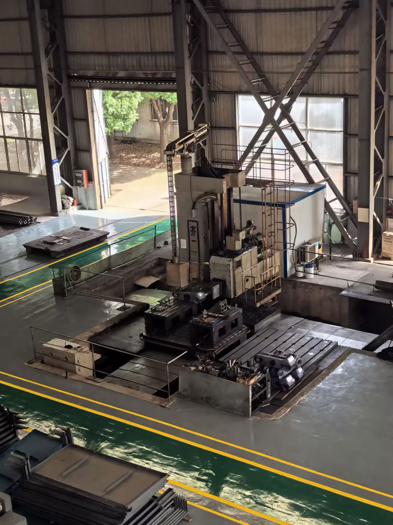 镗轴直径Φ130,X轴行程6000mm,垂直行程2000mm,回转工作台2m×2.5m。