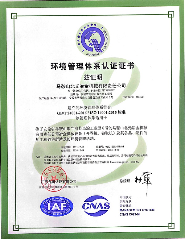 环境体系认证证书